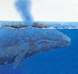 Whales come to the surface regularly to breathe air. They breathe through a blowhole in the top of their heads. When they breathe out, blows of vapor shoots into the air.